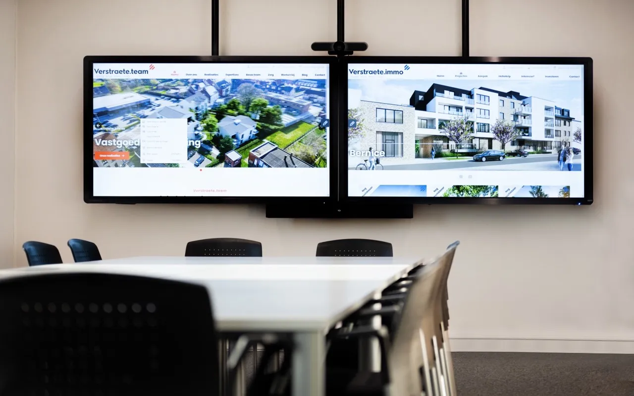 Voor een groeiend bedrijf met meerdere business units is efficiënte interne communicatie cruciaal. Verstraete zocht naar oplossingen die meetings productiever maken, presentaties vlotter laten verlopen, en bezoekers meteen een professionele indruk geven.