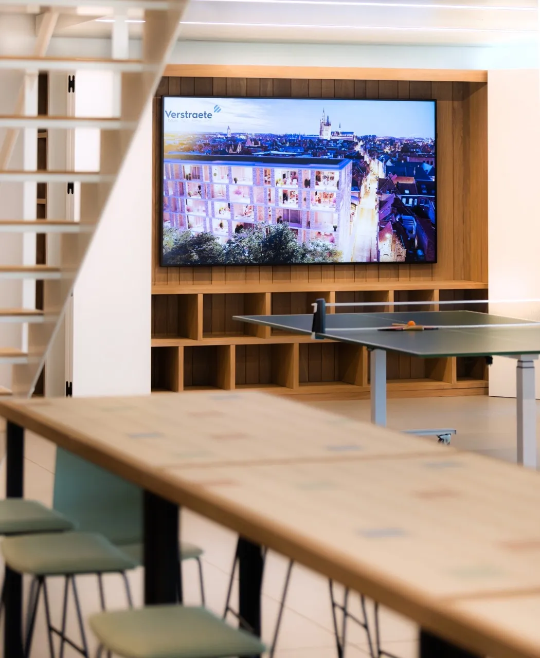 In één van de vergaderzalen werden daarnaast twee interactieve displays geïnstalleerd. "Die gebruiken we intensief tijdens besprekingen met werfleiders en voor onze Verstraete Academy, waar we trainingen geven aan ons team en externe partners," aldus Francis.